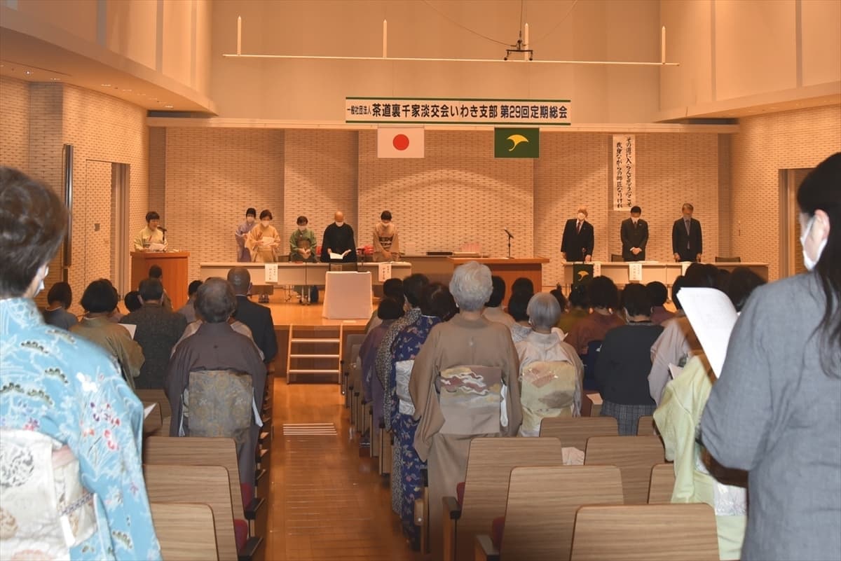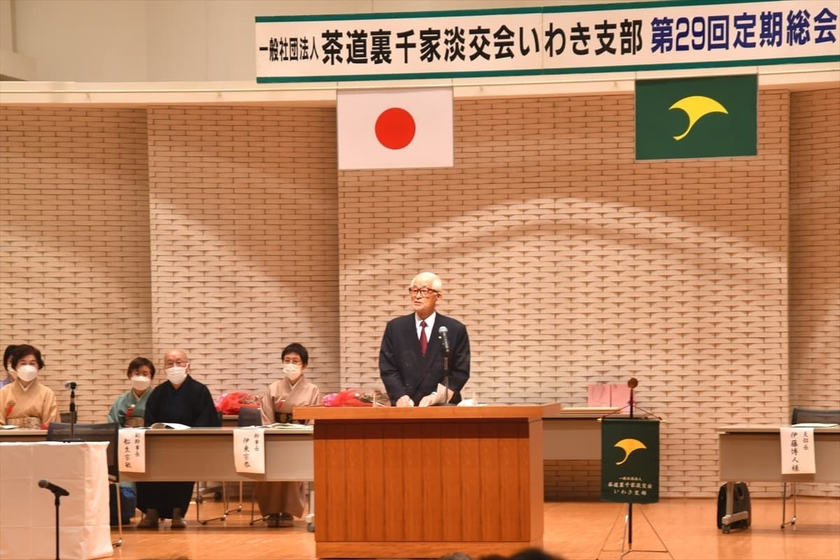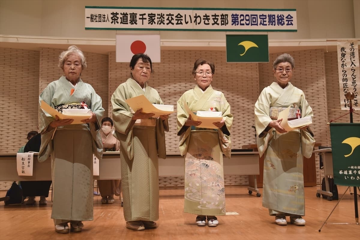 令和5年2月26日(日)にいわき市文化センター大ホールにて、第29回定期総会を開催しました。 令和4年度の事業報告や会計収支決算報告、監査報告、令和5年度の事業計画案や予算案の審議並びに承認が行われました。 共済会や学校茶道連絡協議会、青年部からの報告。 名誉師範拝受者披露、特別表彰並びに継続会員表彰が行われました。 名誉師範拝受者披露 継続会員表彰者 継続会員表彰者 特別表彰者