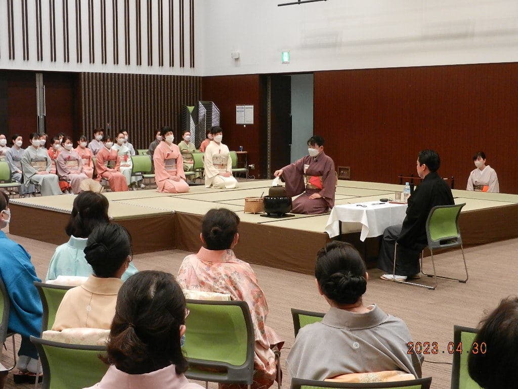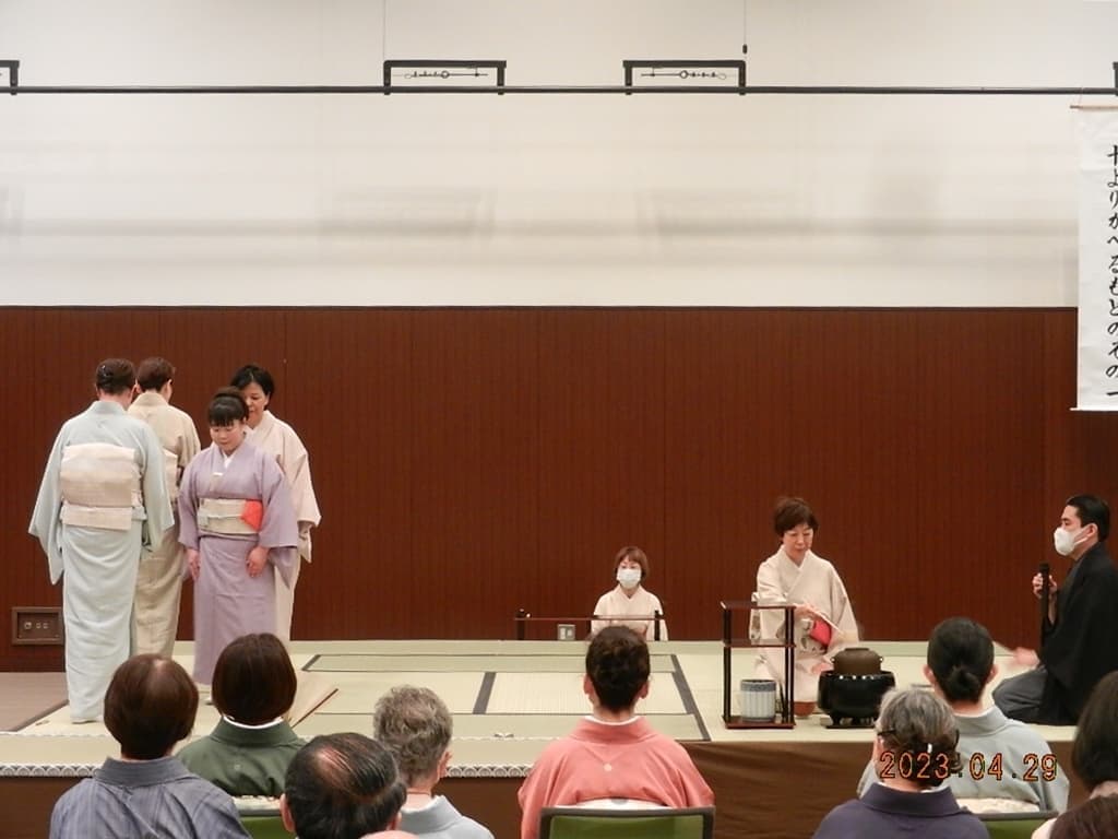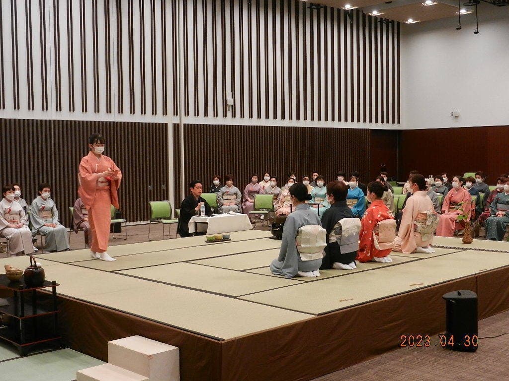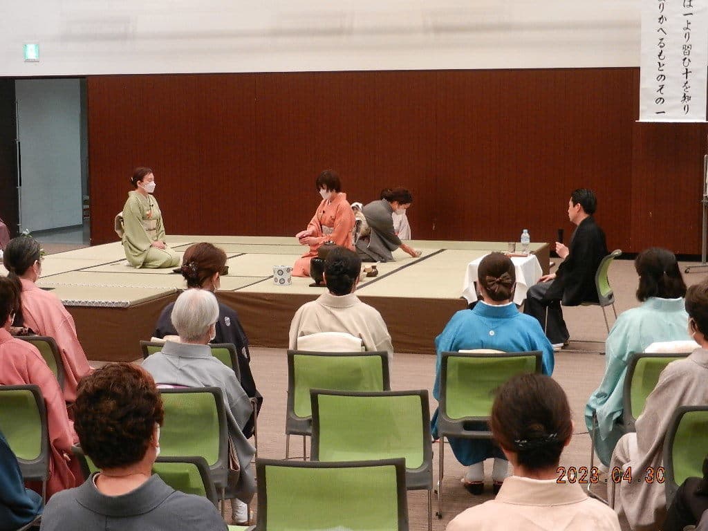 令和5年4月29・30日にいわき産業創造館(ラトブ)にて、令和5年度の研究会を開催しました。 一日目(4月29日)講師:河野宗輝先生講義:「本炭所望、略炭所望について」 炭付花月之式 貴人点濃茶点前 後炭手前 薄茶点前 講義 二日目(4月30日)講義:「大津袋について」支部の要望により河野先生にはマスクを外していただきました。 初炭手前 大津袋 薄茶(替茶碗) 平花月之式