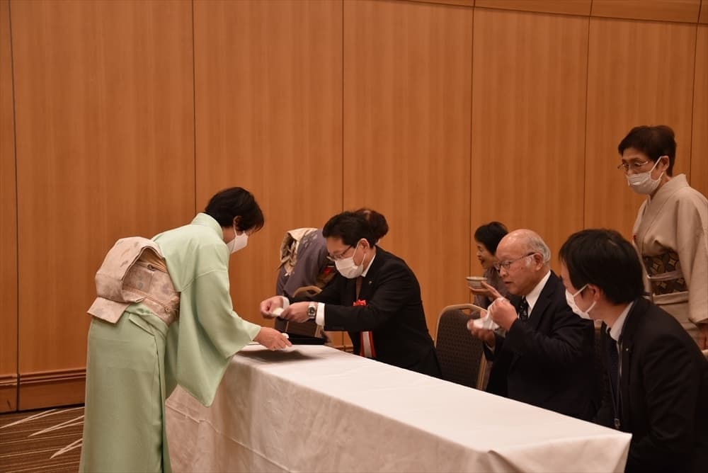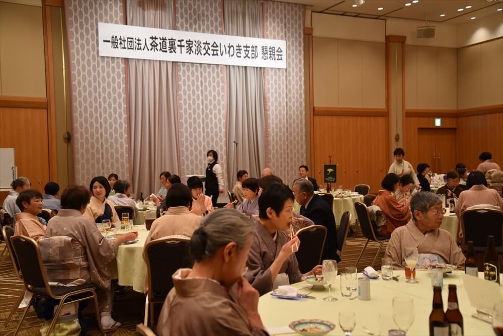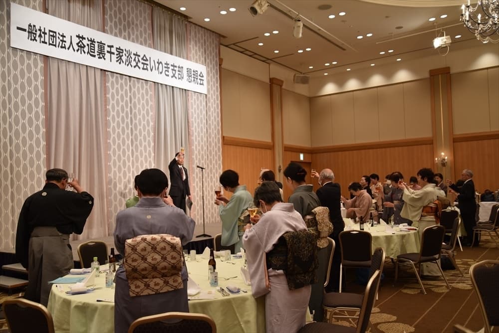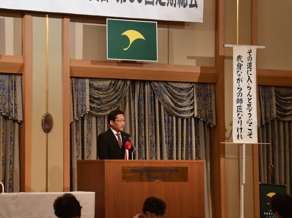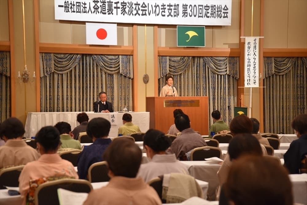 令和6年2月12日(日)にいわきワシントンホテル椿山荘 アゼリアにて、第30回定期総会を開催しました。 呈茶席のしつらえ 呈茶席 支部長ご挨拶 いわき市長内田広之様よりご祝辞 幹事長より事業報告 総会会場全体の様子 休憩場所で懇親会を待ち望む 居合道教士8段 志賀正光様による居合道立ち業7本の演武 懇親会席村田副支部長より"乾杯"のご発声 懇親会席 皆さん和やかに歓談、舌鼓 懇親会席 懇親会席(福引)