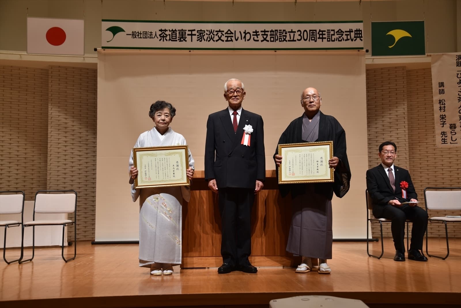 令和6年9月16日にいわき市文化センターにて、いわき支部設立30周年記念事業を開催しました。 本年は支部設立30周年の節目の年となります。東日本大震災・原発事故、その後の度重なる地震、洪水などの被害から会員一丸となって乗り越えることができました。このように支部活動をつづけられることに感謝し、支部の尚一層の繁栄を願い記念事業を開催しました。 記念式典 講演 濃茶席 薄茶席 学茶・青年部