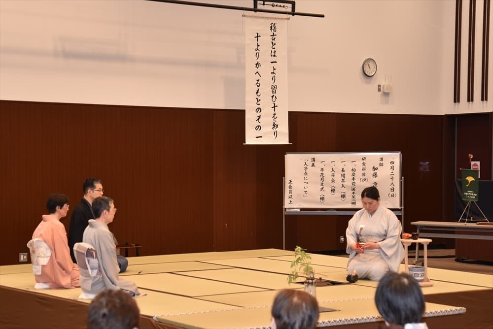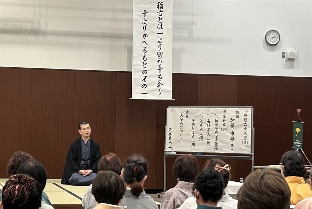 令和6年4月27・28日にいわき産業創造館(ラトブ)にて、令和6年度の研究会を開催しました。 一日目(4月27日)講師:加藤宗雄先生講義:「大海・内海茶入について」 初炭所望(透木釜) 唐物点 薄茶点前(運び) 結び帛紗花月之式(棚) 炉中 二日目(4月28日)講義:「入子点について」 初炭点前(透木釜・棚) 長緒茶入(棚) 入子点(棚) 平花月之式(棚) 講義